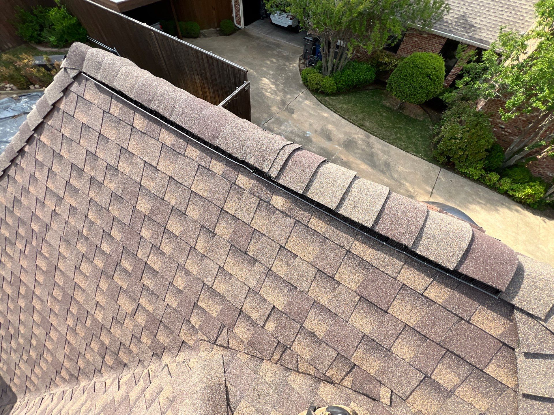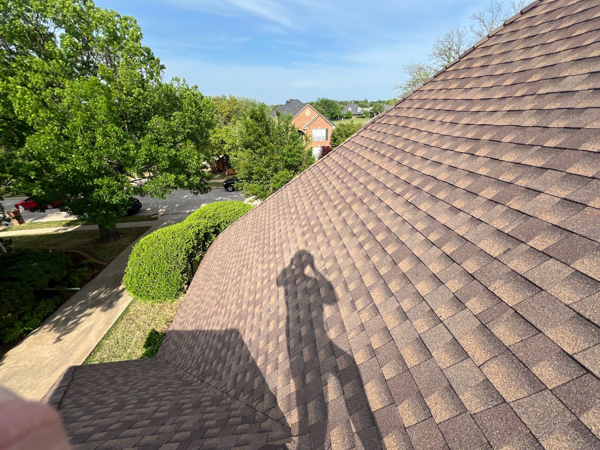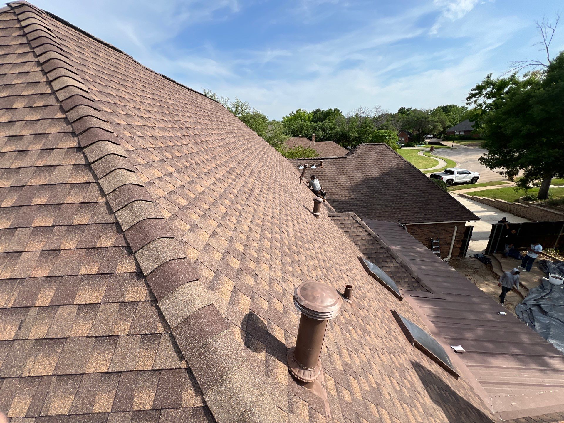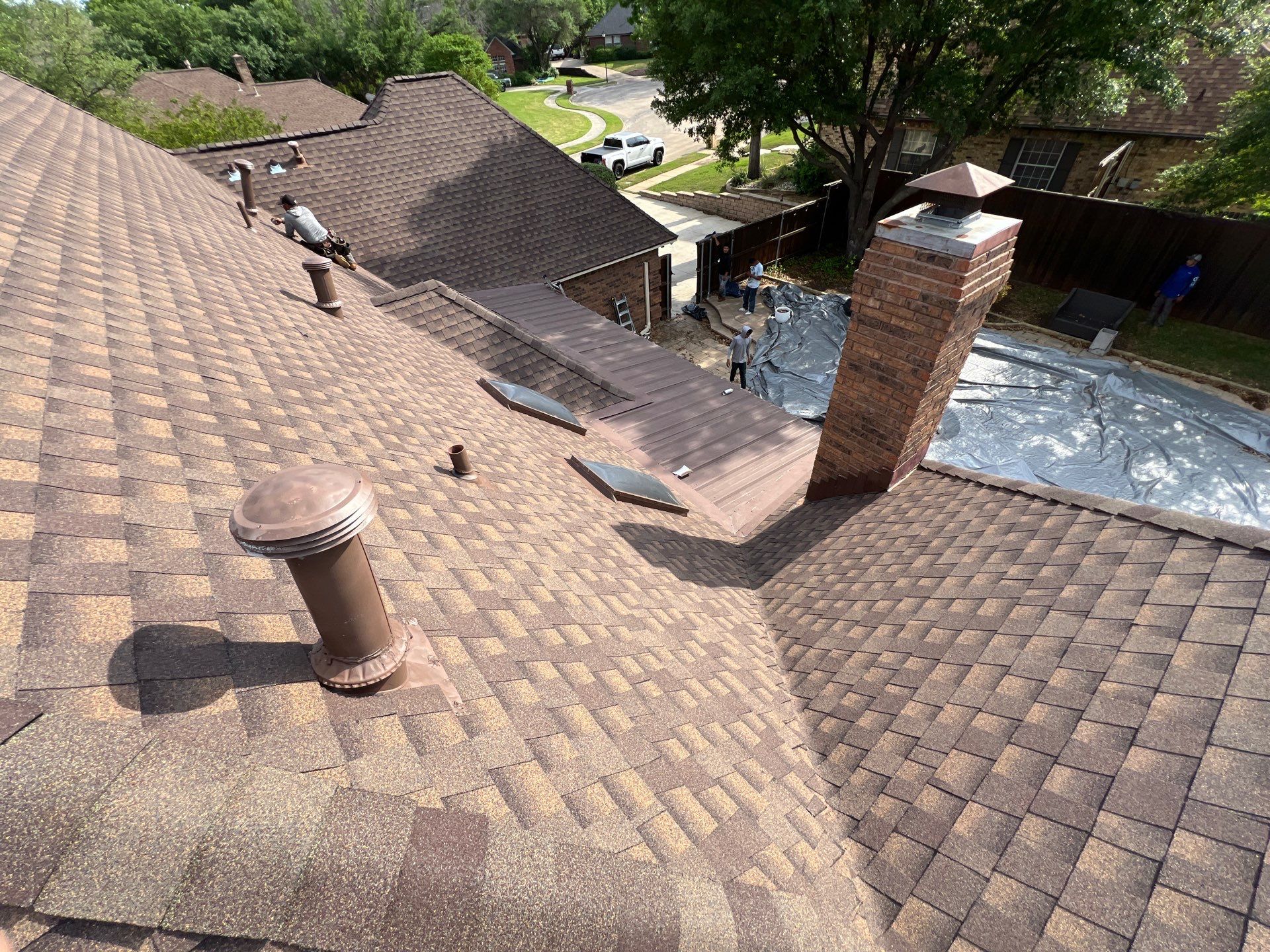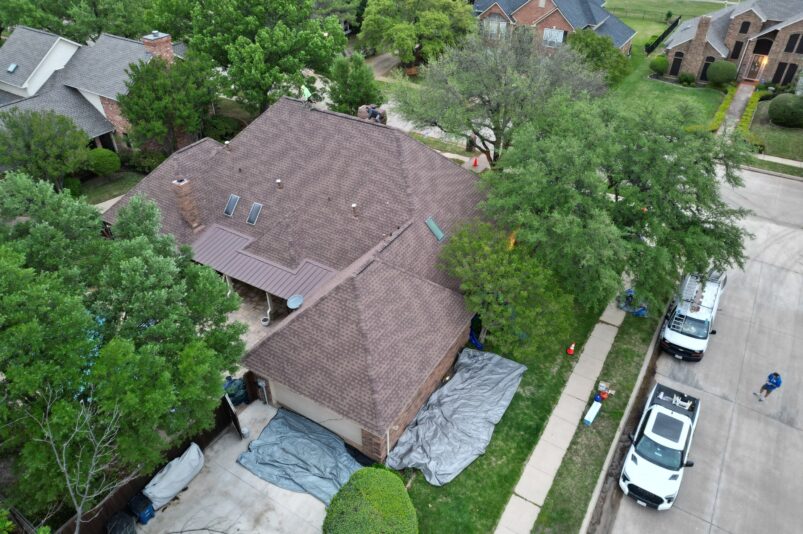 This case study details the complete roof replacement performed by Presidio Roofing Company for a residential property in Oakmont Estates in Corinth, Texas. The project involved removing storm-damaged architectural shingles and installing GAF Timberline HDZ Barkwood Architectural Shingles to improve energy efficiency and wind resistance. The project was completed in April 2025 with a total coverage of 5,400 sq ft.