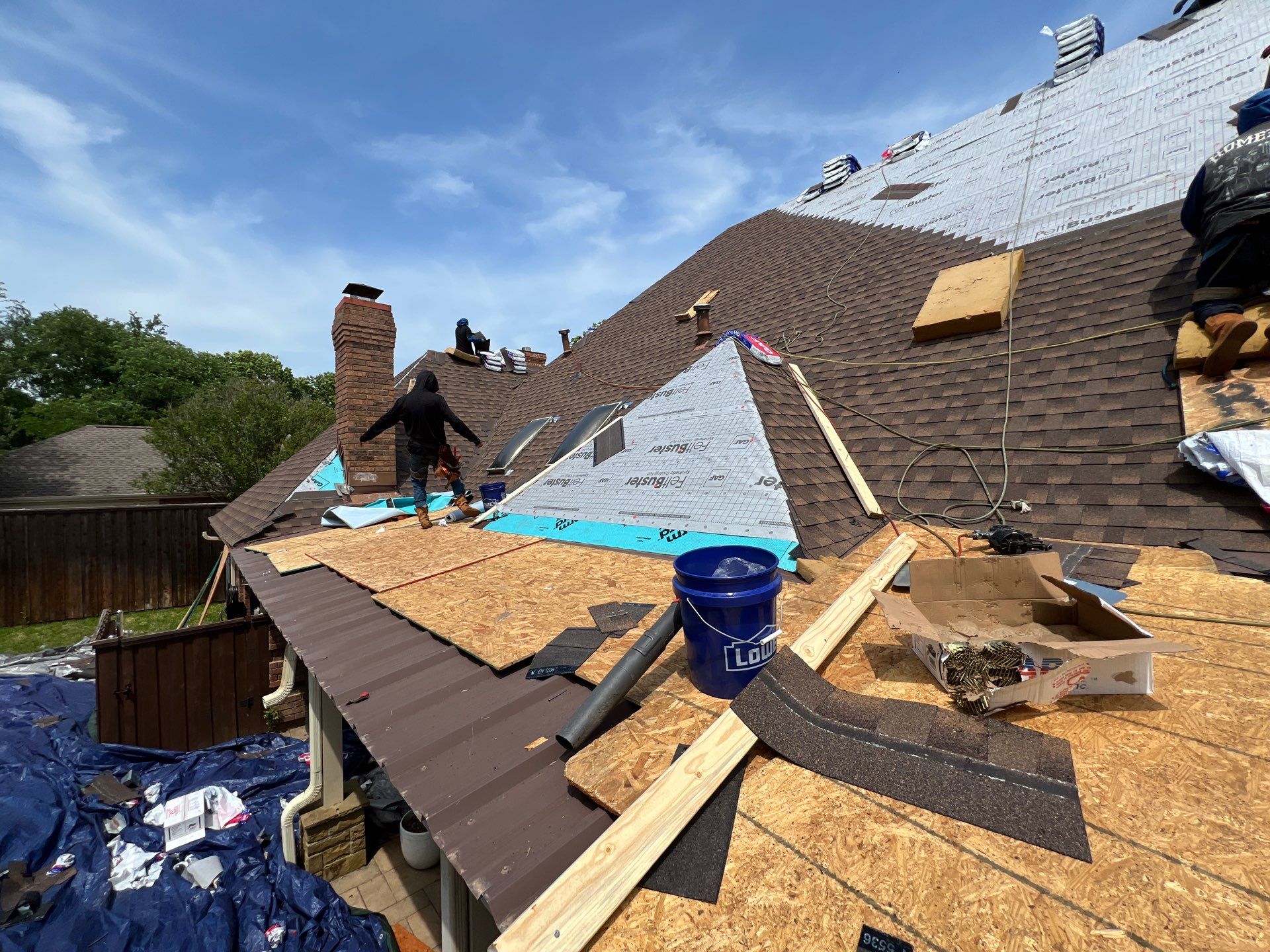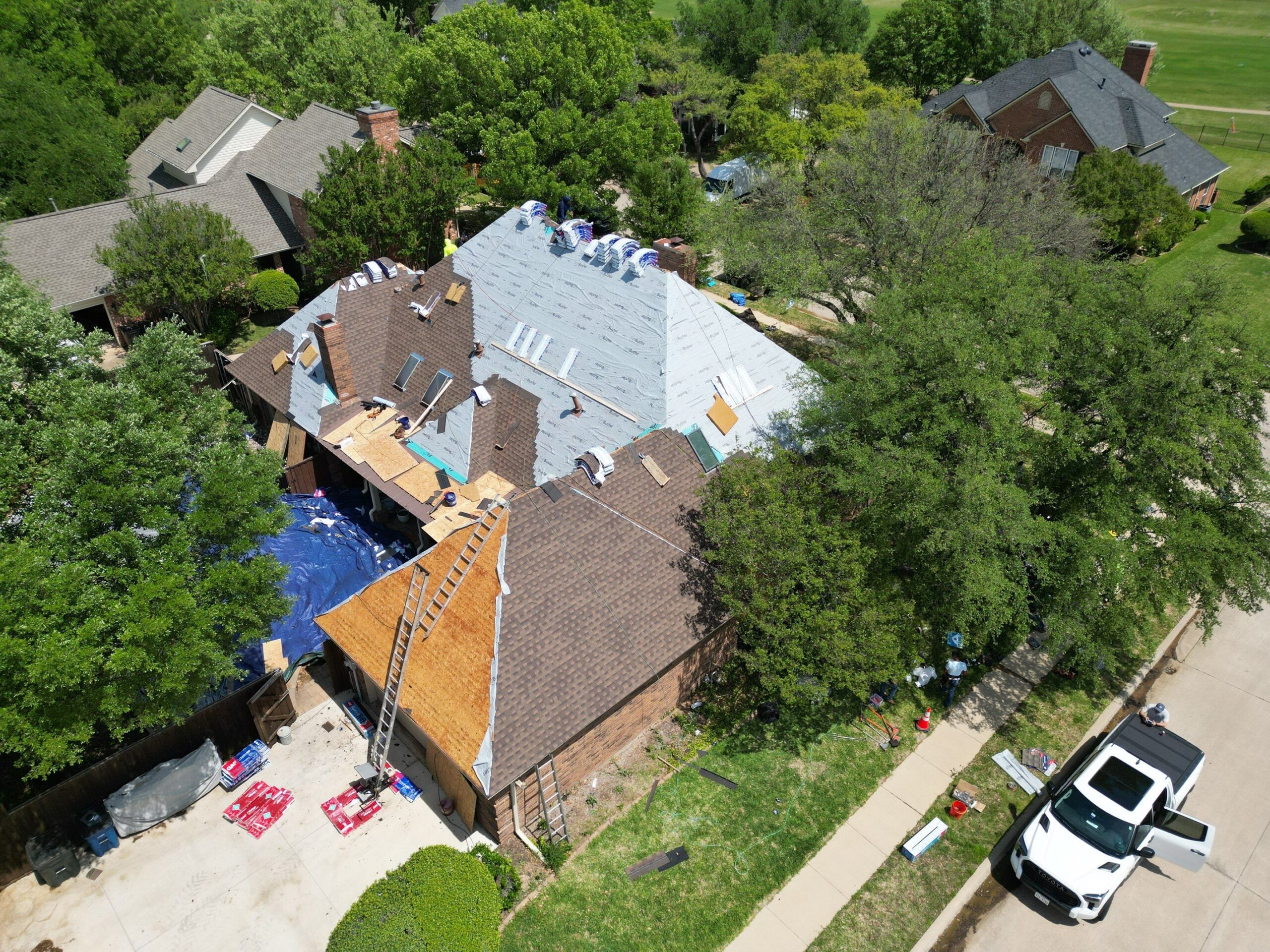 This roof needed to be replaced asap as part of the closing of the sales of the home to new buyers. Luckily USAA insurance agreed there was hail damage and paid for the roof but it was rainy season in North Texas and they needed the roof done within a week roughly. The forecast had 1 sunny day in that time period.