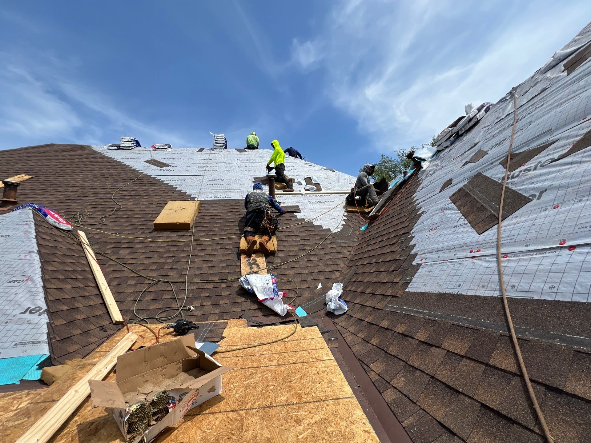 We quickly moved to get materials ordered and crew ready. We had 1 sunny day to get this roof done and brought out an oversized crew of 14 people to make sure we would finish it in 1 day. This is why having a company like Presidio that has the ability to mobilize crew and materials, and install a $45k roof in 1 day on minimal notice is a huge advantage for homeowners needing quick service. Most companies do not have the ability to control so many moving parts so fast.