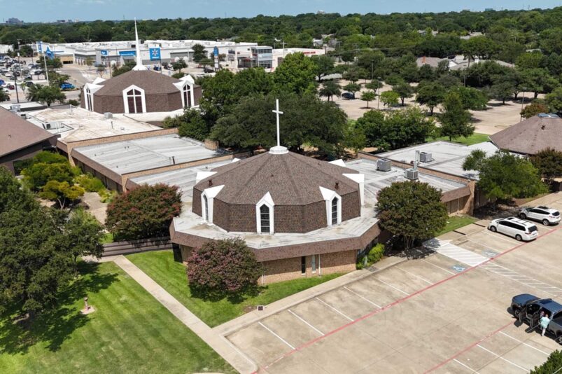 Take a recent church project our team finished up recently. Our Flower Mound team had to tackle unique obstacles that aren’t often factors in residential roof replacement, but the result was the same: a strong roof that will last for decades to come, and a very happy customer!